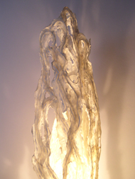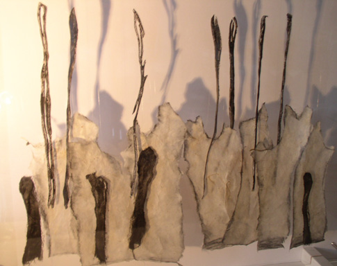 Expositie met Juul Bogemann en Jaap Beets met tekeningen, glaskunst, transparante objecten van papier en andere materialen en in vele tinten wit en zwart.
