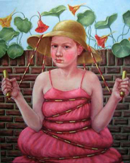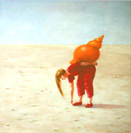 Schilderijen in olieverf van Geeske Harting: Lunapark, Wolkje aan de lucht en Zoektocht